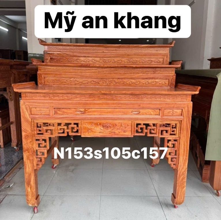 Trong đời sống văn hóa tâm linh của người Việt, bàn thờ gia tiên luôn giữ một vị trí đặc biệt thiêng liêng. Bàn Thờ Gia Tiên Gỗ Hương 3 tầng do Mỹ An Khang sản xuất chính là sự kết tinh hài hòa giữa nghệ thuật thủ công, chất liệu cao cấp và chiều sâu tâm linh, giúp gia chủ thể hiện lòng kính với tổ tiên.